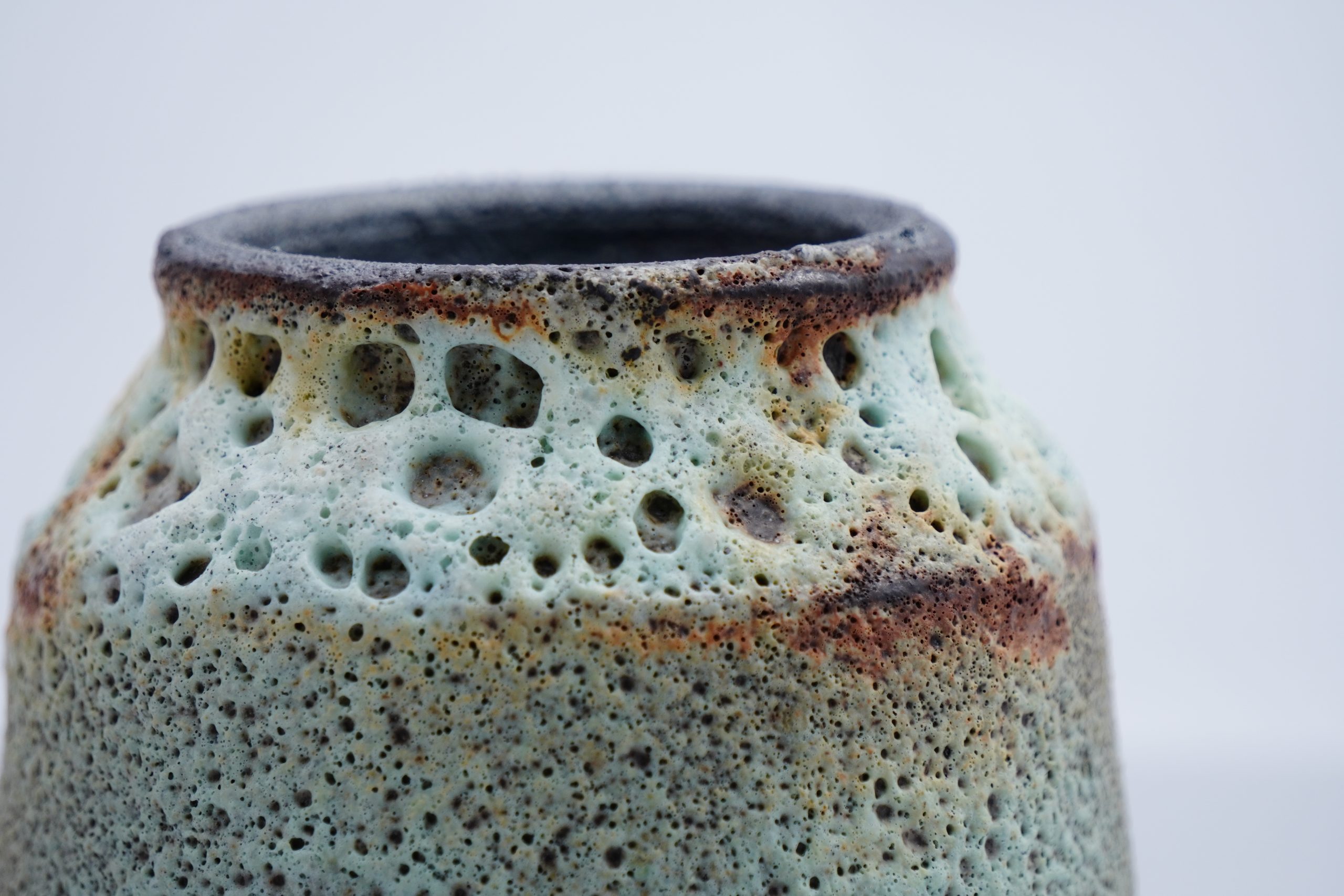 約1cmまでの発泡層をもつ溶岩発泡釉による花器作品。